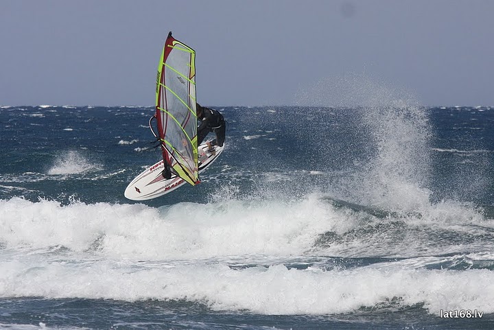 Šodien paņēmu beidzot nopietnākus ieročus – 72 litru dēli un 4.2 buru. Sākumā bija pavisam labi, bet nez kāpēc vēlāk nedaudz pielūza un nācās ik pa brīdīm pastāvēt… 72 litru dēlis ir daudz labāks salīdzinoši ar 80nieku, kurš visu laiku gāžas riņķi taisot fronside bottom turn…