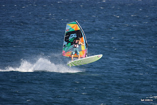 Es paņēmu 4.5 un Edgars 5.0. Izrādās, ka bijām paņēmuši nedaudz par mazu izmērus. Vējš bija dikti raustīgs, bet to atsvēra baigu baigais siltums… Pie krasta varēja taisīt Flakas, iekšā mācījos Šovitu.