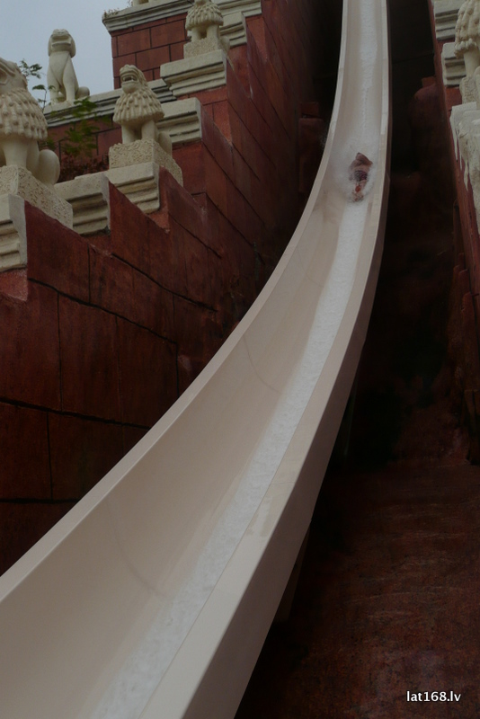 >Re kur man šļūciens pa Tower of Power, it kā sasniedzot 80km stundā. Bet jāsaka atklāti, ka ātrumu nemaz tā nevar izjust, tāpat kā baildes, jo jau no pirmajiem metriem acis ir pilnas ar ūdeni.